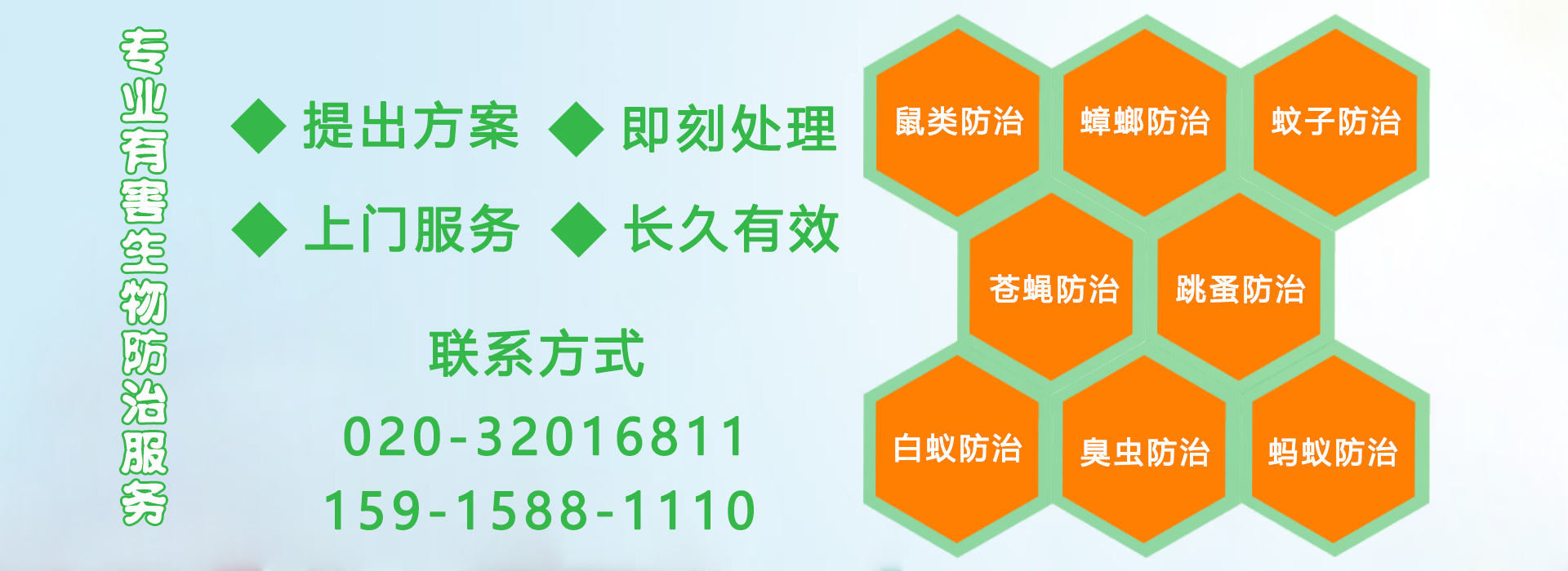 廣州億康環(huán)境科技有限公司聘請了多名資深業(yè)內(nèi)專業(yè)人士為顧問,擁有多名專家、教授組成的研發(fā)和客服服務(wù)團隊,公司引入了現(xiàn)代企業(yè)管理體系,優(yōu)化了以客戶為中心的服務(wù)流程,優(yōu)秀的管理團隊以高技術(shù)、高標(biāo)準(zhǔn)、高品質(zhì)服務(wù)確保我們客戶的滿意。經(jīng)過多年的努力,公司培養(yǎng)了一批技術(shù)過硬的高素質(zhì)專業(yè)服務(wù)隊伍,裝備了國內(nèi)外先進的消殺器械和環(huán)保、安全、高效的藥物,以專業(yè)化的防治技術(shù)為社會各行各業(yè)提供優(yōu)質(zhì)高效的除害服務(wù)。